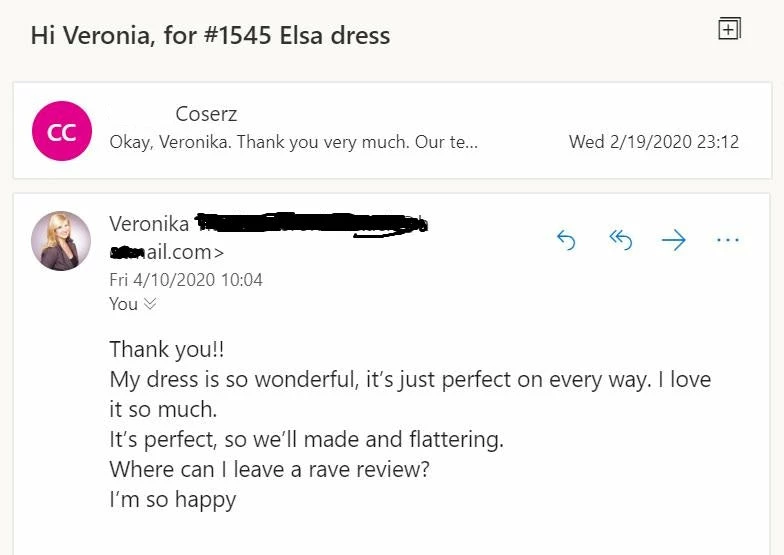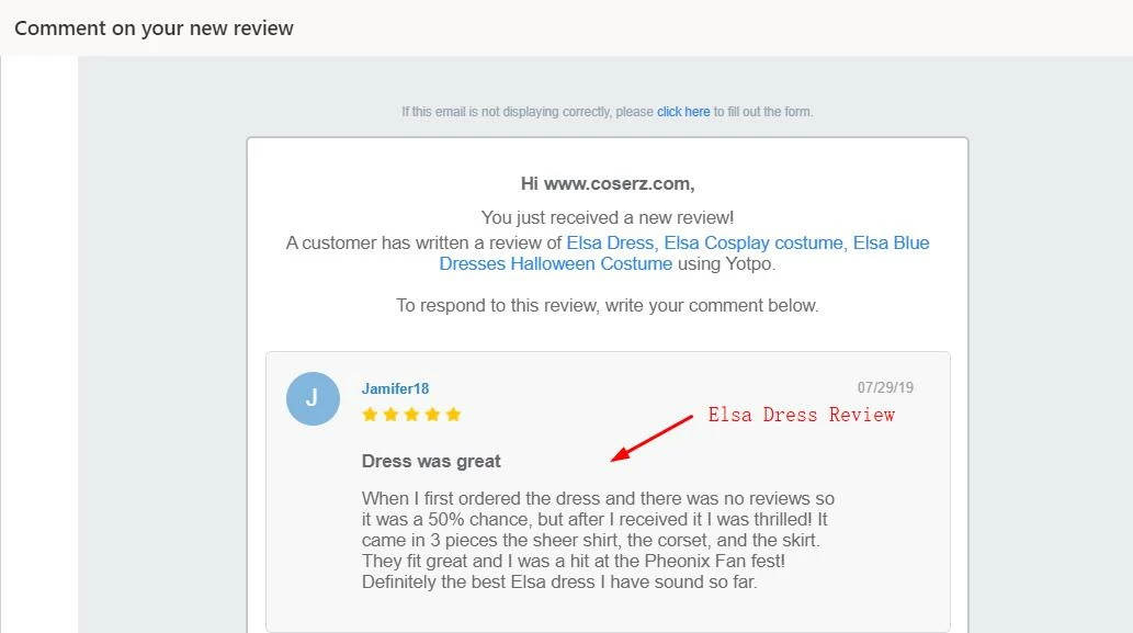 And finally, Jamifer18 said, “When I first ordered the dress and there were no reviews, so it was a 50% chance, but after I received it, I was thrilled! It came in 3 pieces the sheer shirt, the corset, and the skirt. They fit great and I was a hit at the Phoenix Fan fest! Definitely the best Elsa dress I have found so far.”