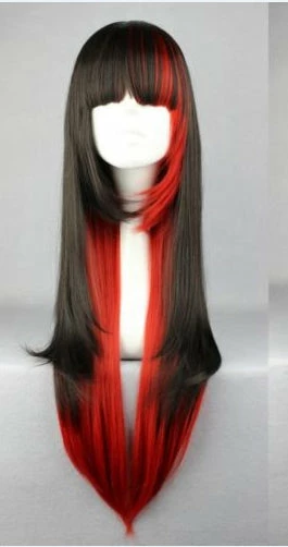 Lolita Women Harajuku Long Cosplay Wig Red Black Mixed Ombre Hair